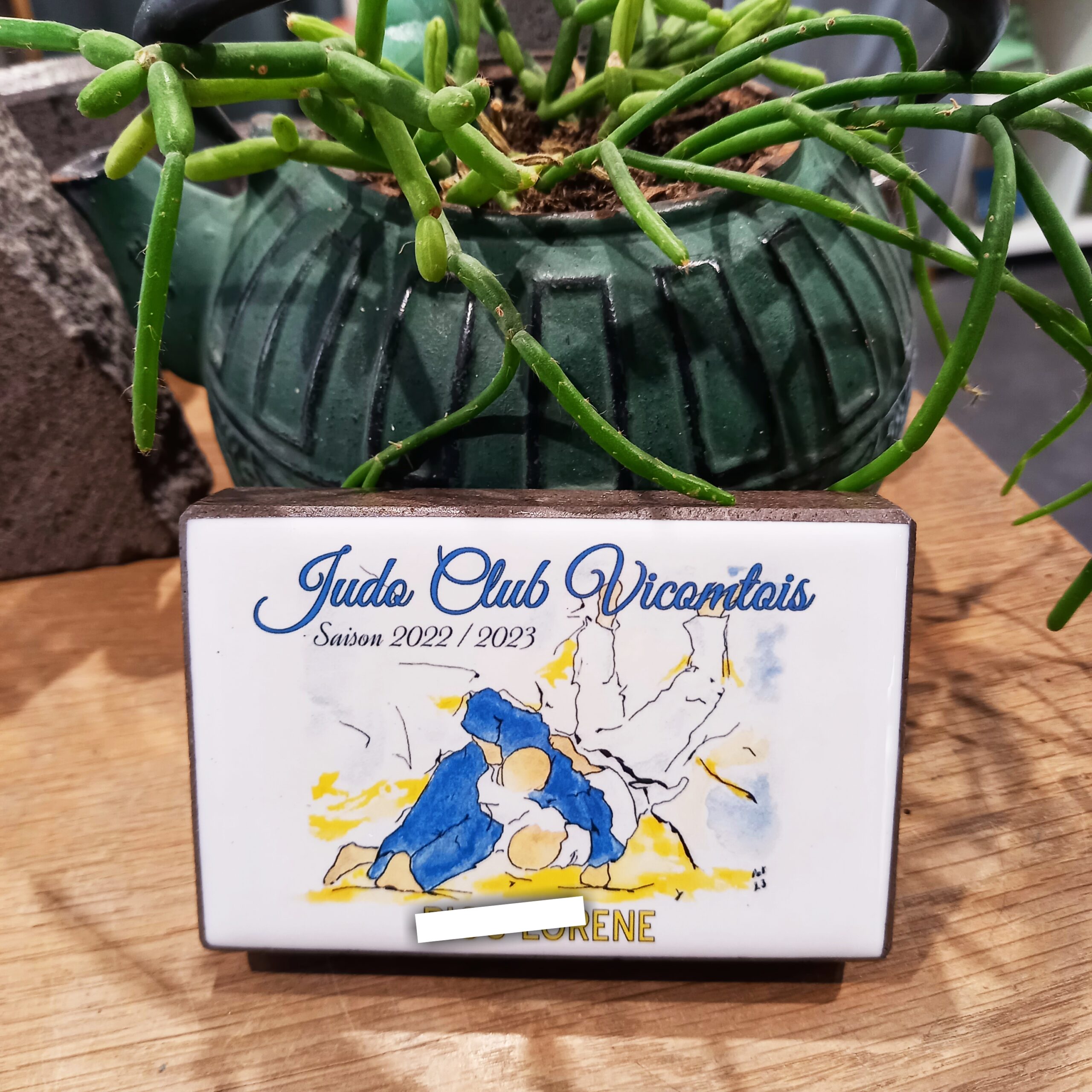 Objet cadeau en pierre de lave émaillée pour le Judo Club de Vic-le-Comte
